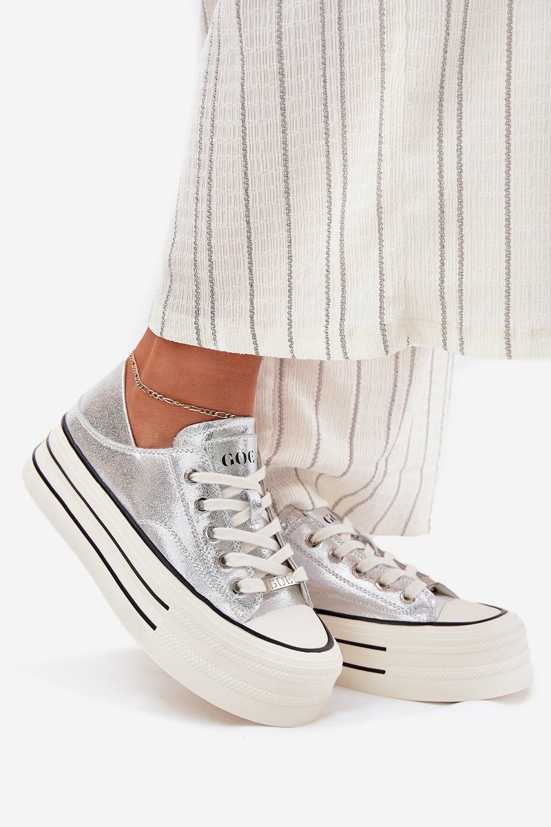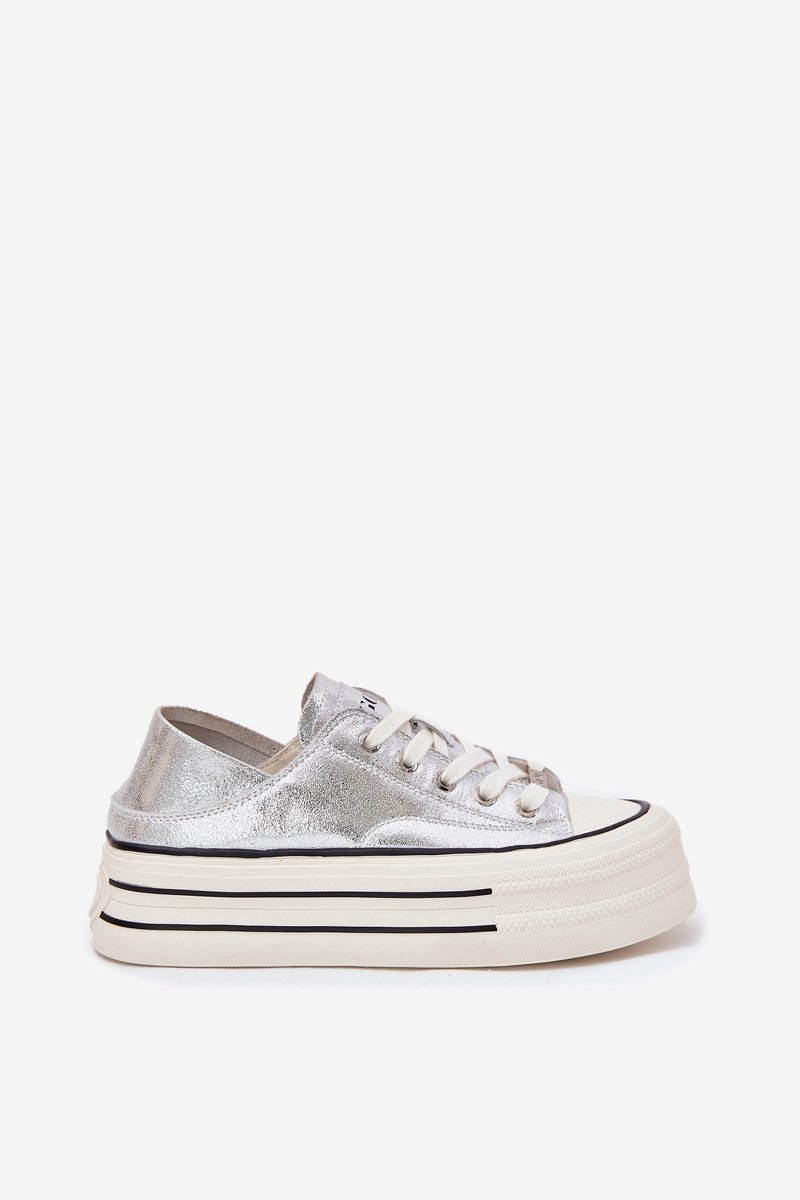 Sidabriniai odiniai platforminiai sportiniai bateliai moterims