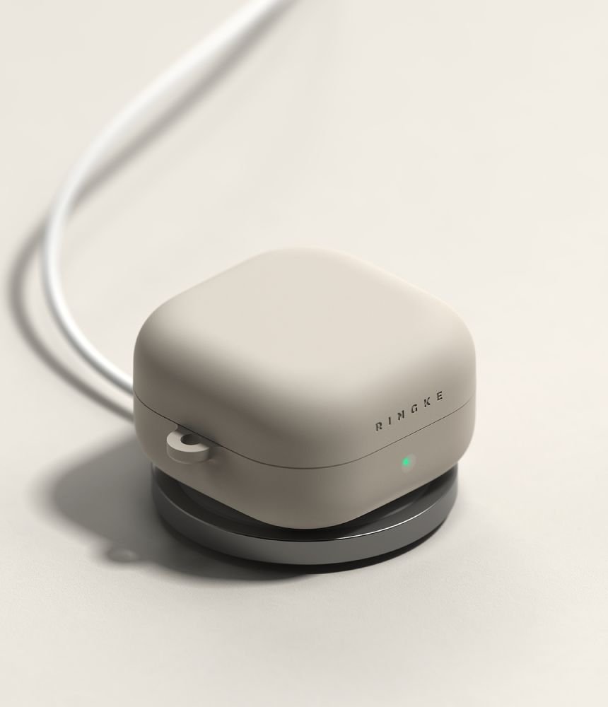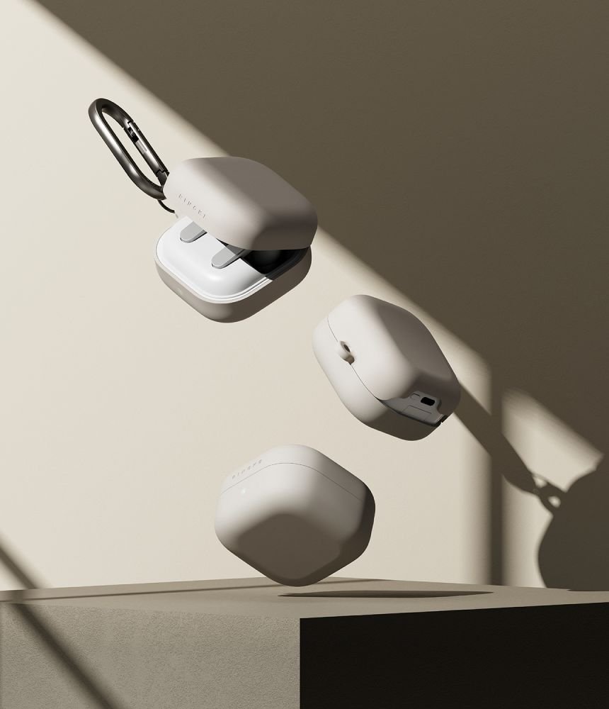 Silikoninis dėklas Samsung Galaxy Buds 4 / Buds 4 Pro, smėlio spalvos, Ringke