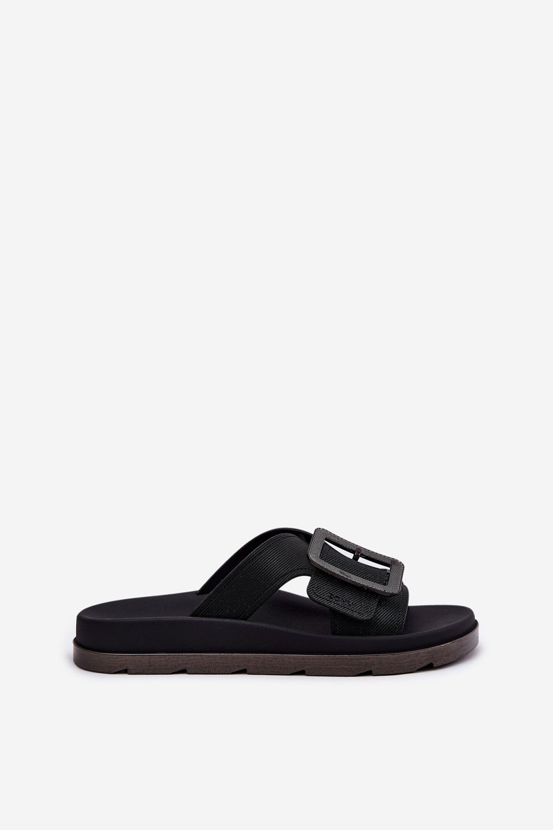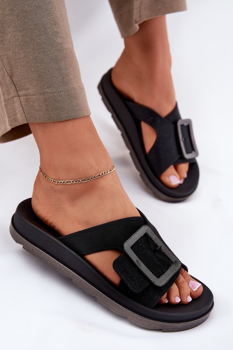 Šlepetės moterims juodos su dekoratyvine sagtimi