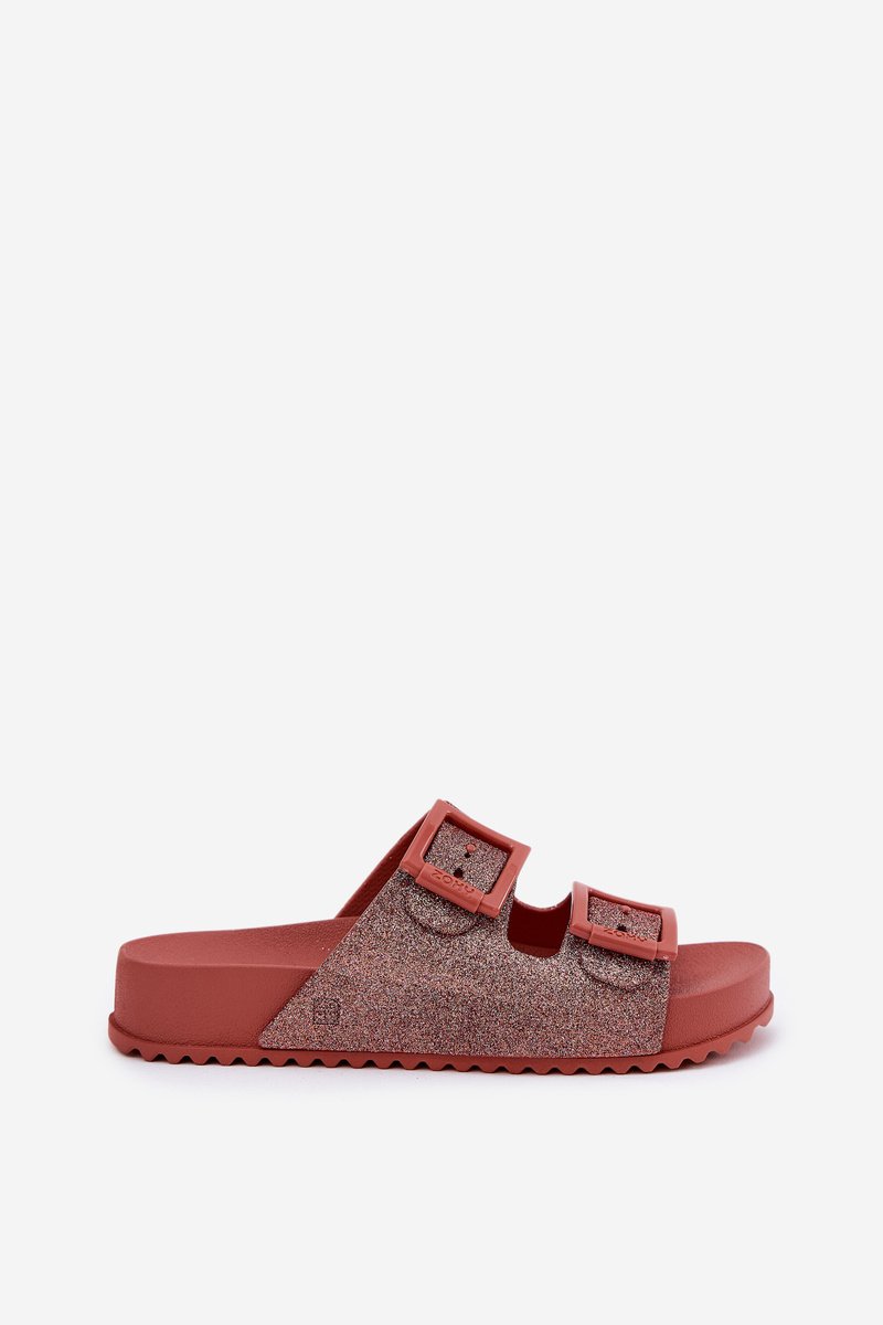 Stilingos moteriškos šlepetės su blizgučiais ir sagtimis – švelniai rožinės