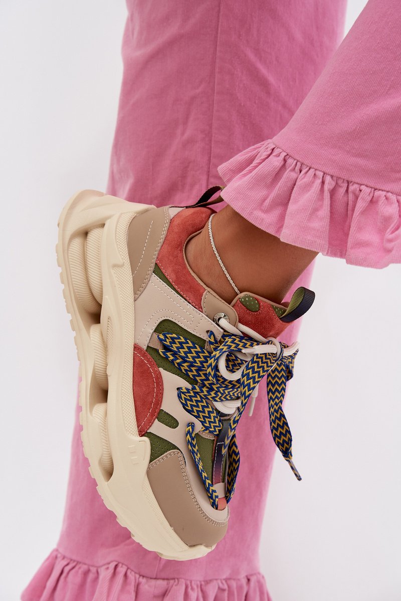 Moteriški sportbačiai iš natūralios odos turi masyvų pakeliamą pado sluoksnį, kuris optiškai prailgina siluetą, o dvigubas šnuravimas padeda geriau priderinti batą prie pėdos ir suteikia stabilumo miesto sąlygomis.