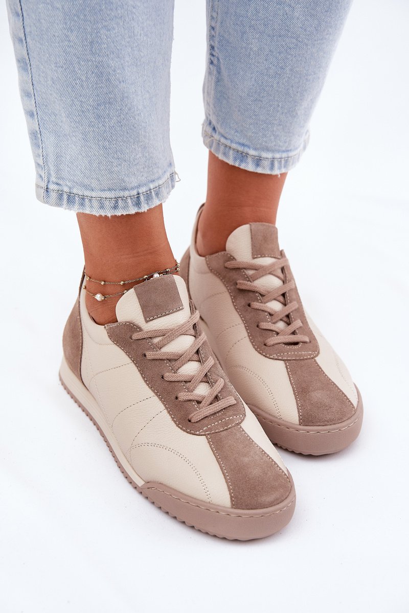 Sportiniai bateliai moterims smėlio spalvos odiniai