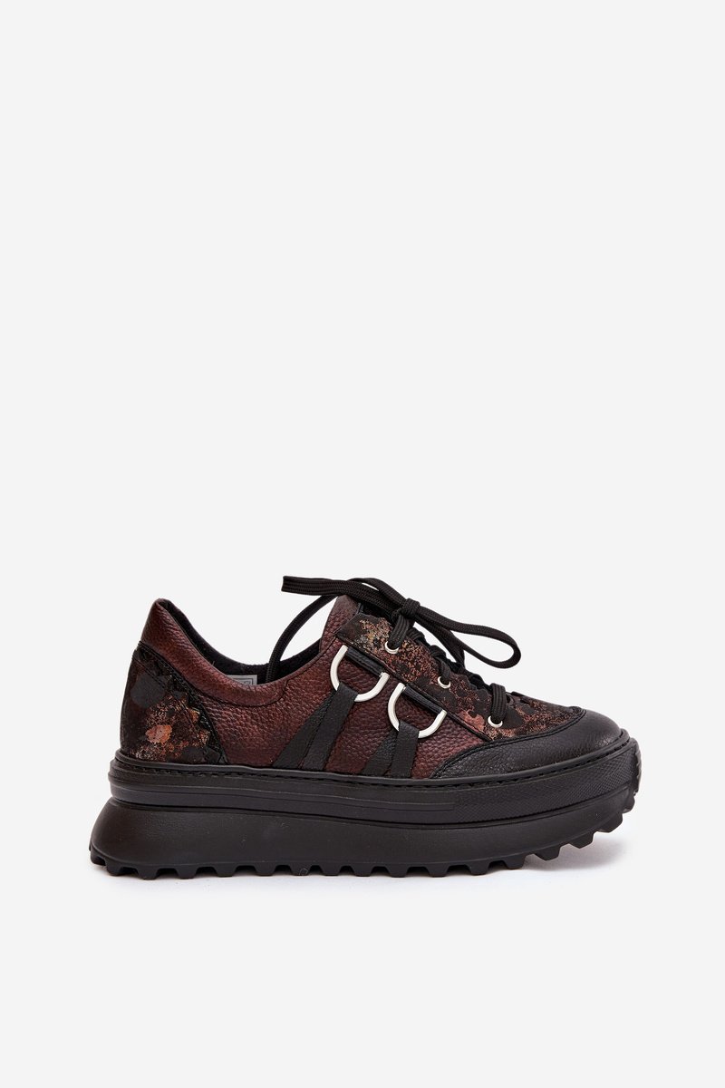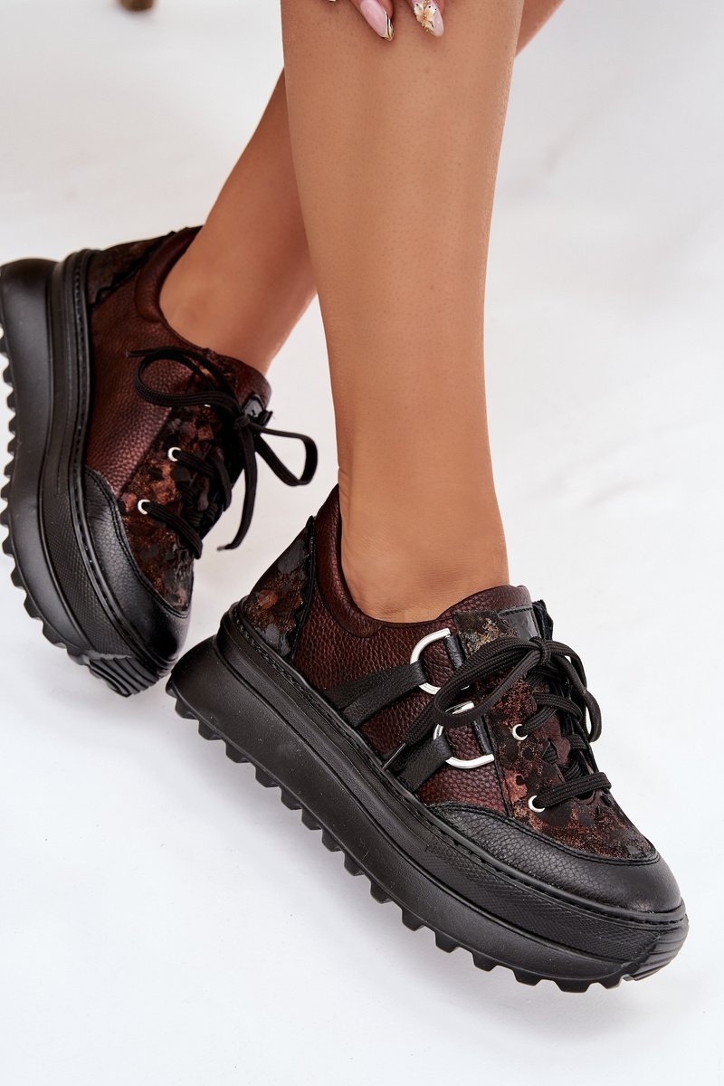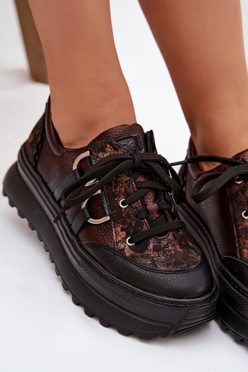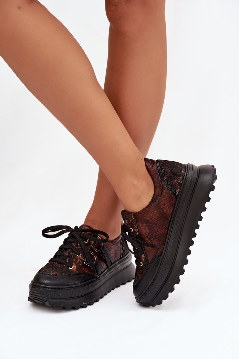 Odiniai sportiniai bateliai moterims su platforma Maciejka, šokolado spalvos