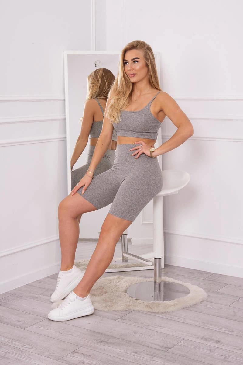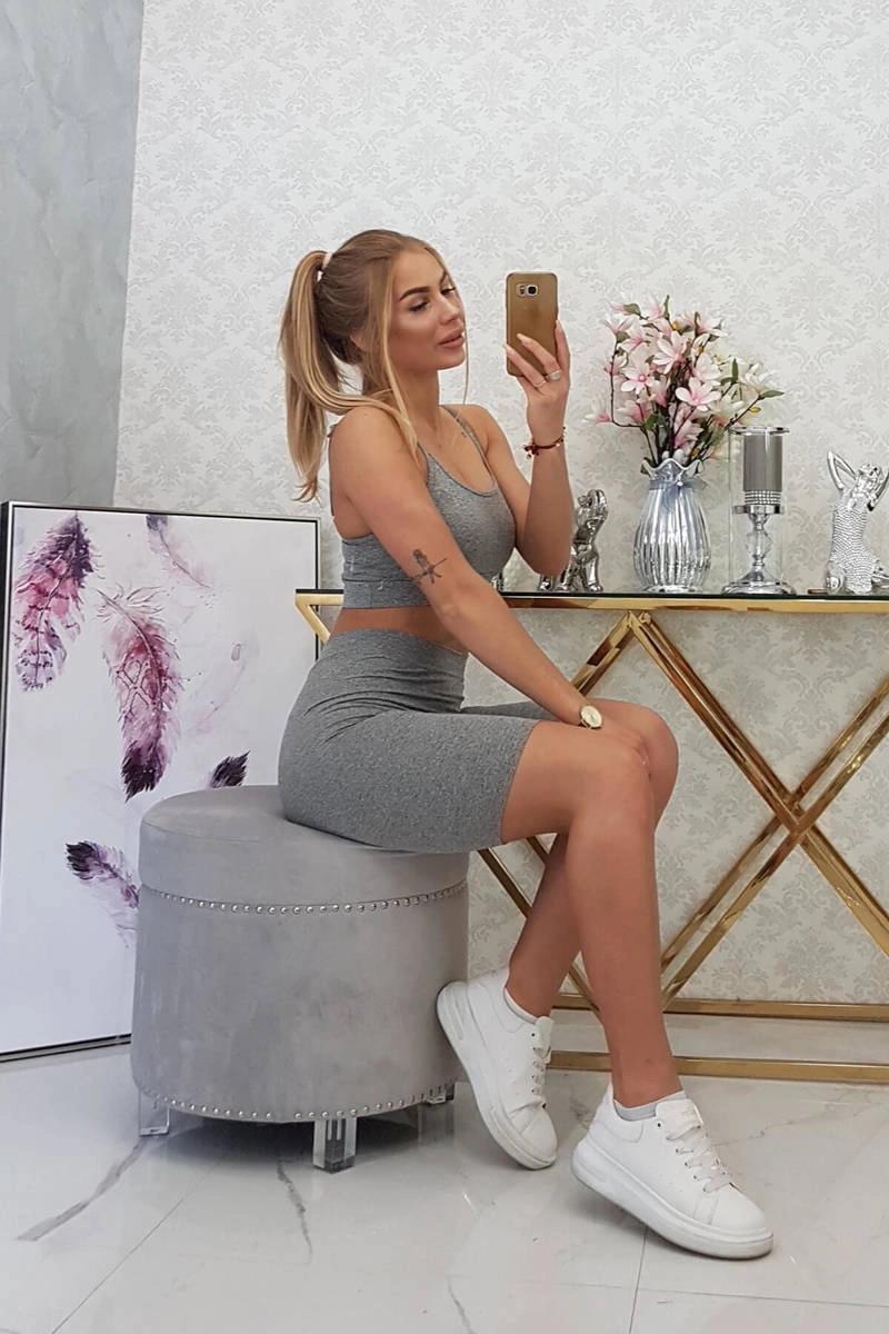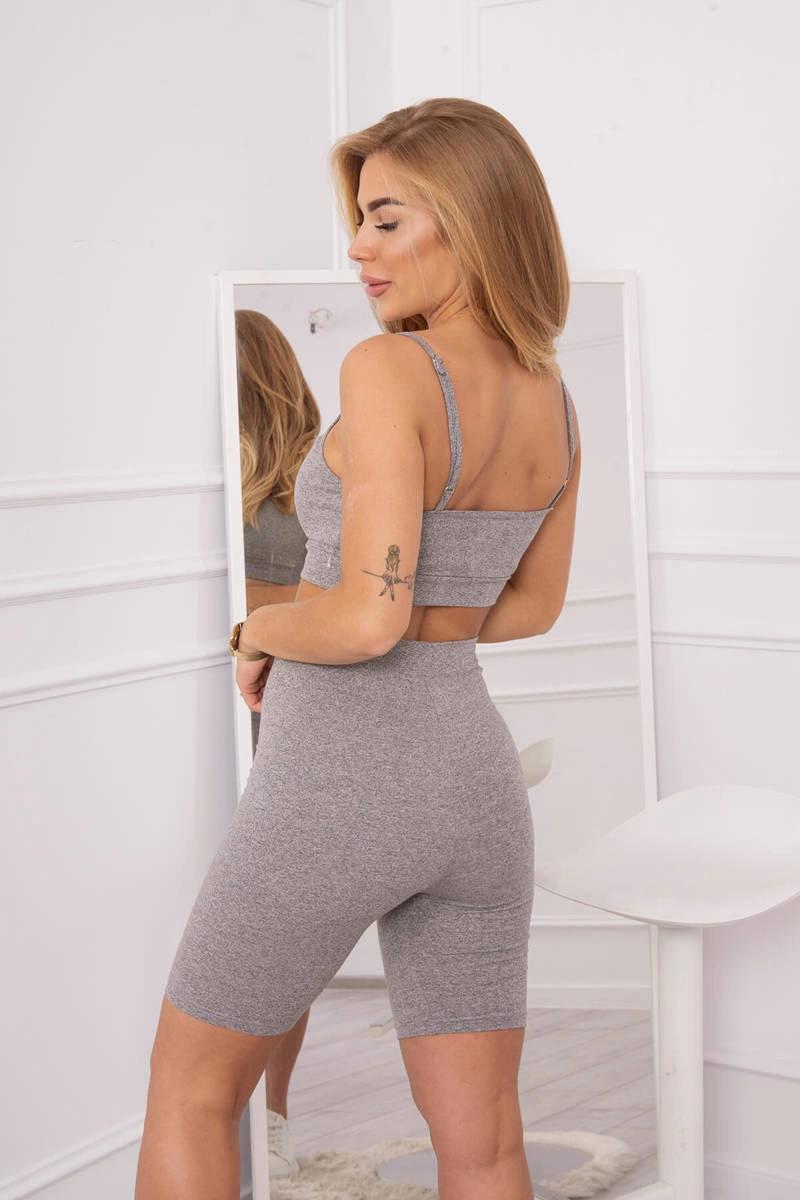 Pristatome jums patogų sporto rinkinį. Dėl lanksčios medžiagos puikiai priglunda prie kūno ir tuo pačiu nevaržo judesių. Komplekte yra viršutinė dalis ir kapriai . Viršus su reguliuojamomis petnešėlėmis, kelnės aukštu liemeniu. Komplektas pagamintas iš aukštos kokybės medžiagos. Dydis yra universalus ir tiks S, M arba L dydžius nešiojančioms moterims.