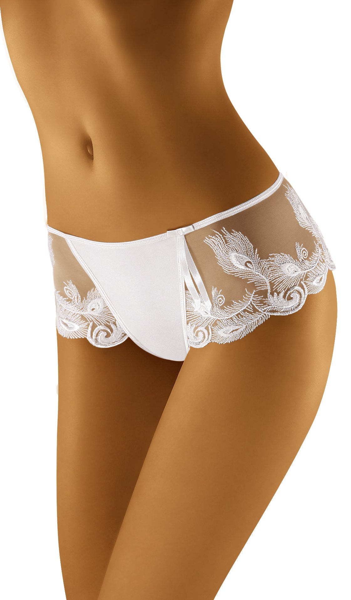 Oshi kelnaitės - tai apatinis trikotažas, siuvinėtas įspūdingais povo akių formos siuviniais. Priekinė dalis visiškai lygi, o šonai permatomi. Motyvas traukia akį ir kartu leidžia apatiniam trikotažui išsiskirti iš kitų pasiūlymų. Sudėtis Sudėtis 83 % poliamidas, 17 % elastanas.
