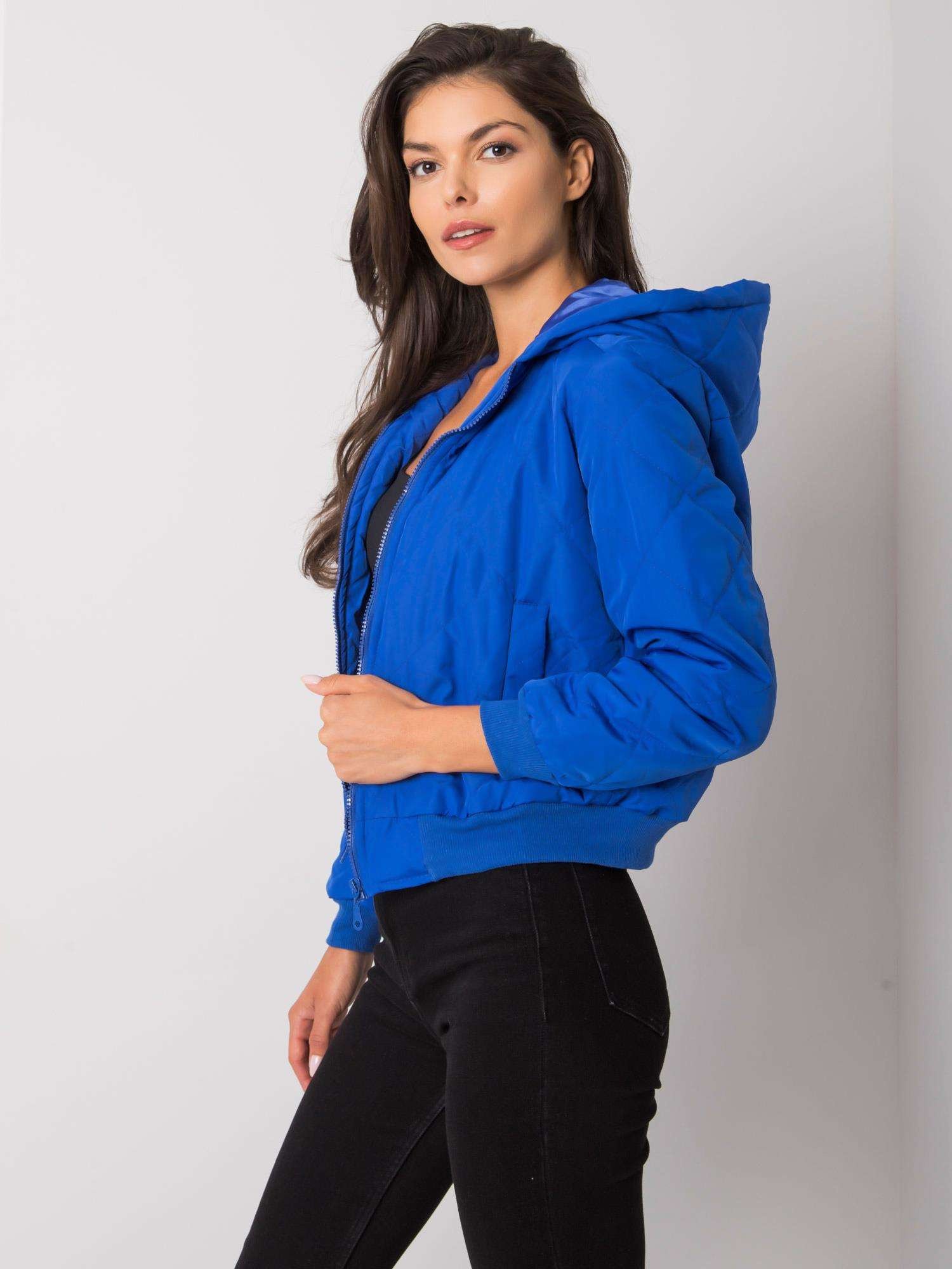 Mėlyna dygsniuota striukė moterims.