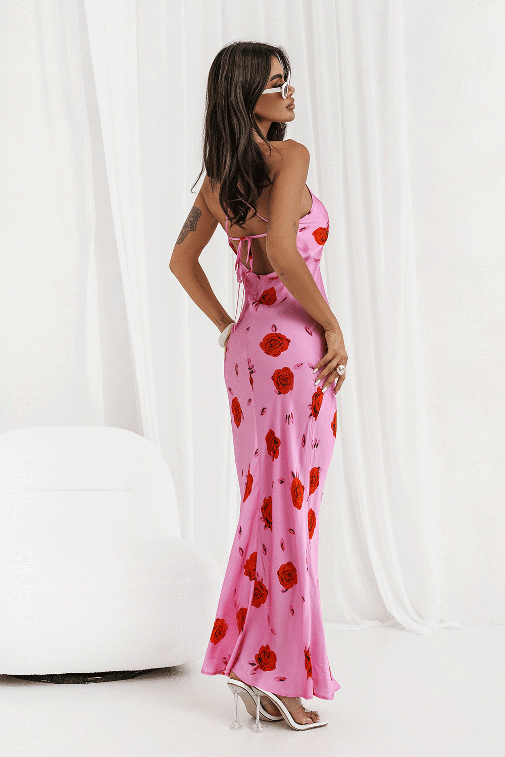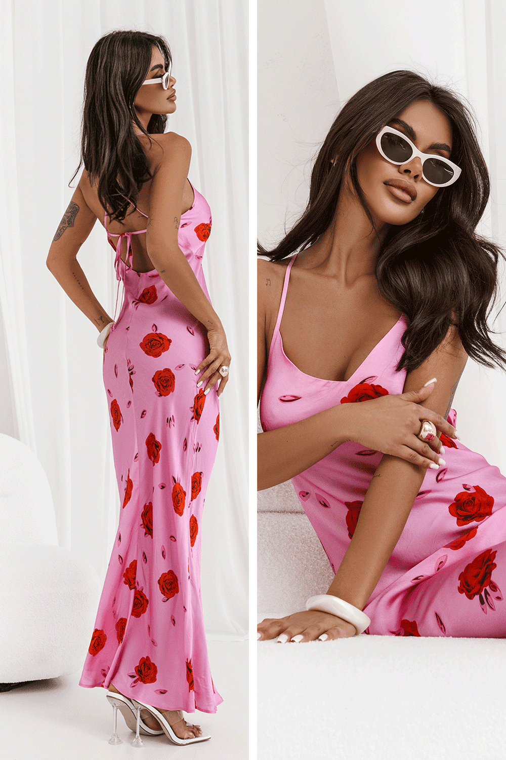 Suknelės rožinis atspalvis ir gėlėti raštai kuria romantišką bei gaivų įvaizdį. Dėl satininio blizgesio ji atrodo lyg tiesiai iš podiumo. Derinkite su aukso spalvos aksesuarais ar mini rankine vakare arba su džinsiniu švarkeliu dienos metu. Tai drabužis, kuris iš karto pabrėžia moteriškumą ir leidžia pasijusti ypatingai bet kurioje situacijoje.