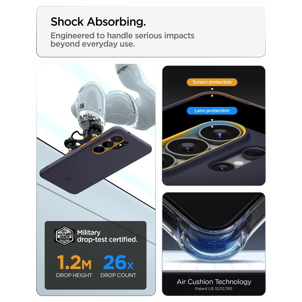 Telefono dėklas suderinamas su Samsung Galaxy S26 Ultra pasižymi integruotu MagSafe žiedu, todėl paprasta prisijungti ir efektyviai įkrauti. Matinis paviršius suteikia patikimą sukibimą, o plonas korpusas išlaiko įrenginio formą be papildomo apimties padidėjimo. Tirštas TPU ir sustiprintos kampų zonos sumažina smūgių poveikį kritimo metu.