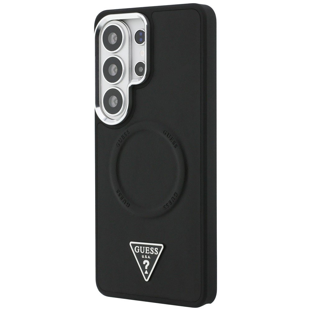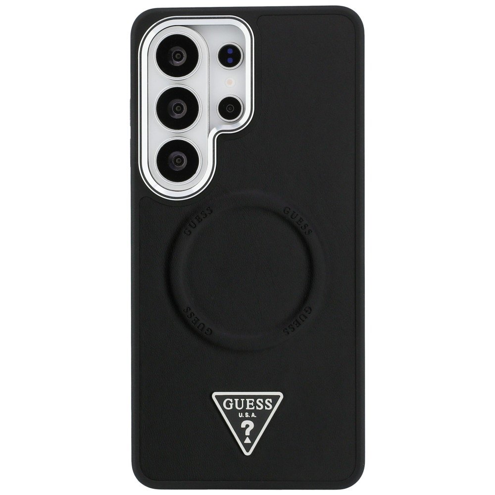 Telefono dėklas suderinamas su MagSafe – skirtas Samsung Galaxy S26 Ultra, leidžia patogiai ir greitai belaidžiu būdu įkrauti ir užtikrina stabilų tvirtinimą. Juodas kieto korpuso dizainas su magnetiniu žiedu suteikia papildomą apsaugą nuo smūgių ir patogumą prijungiant įkroviklį. Dėklas dengtas dirbtine oda (eco-leather) ir išlaiko stilistinį akcentą su Guess logotipo detalėmis.