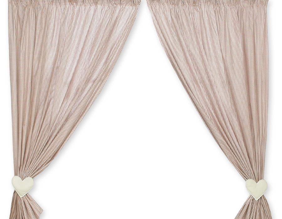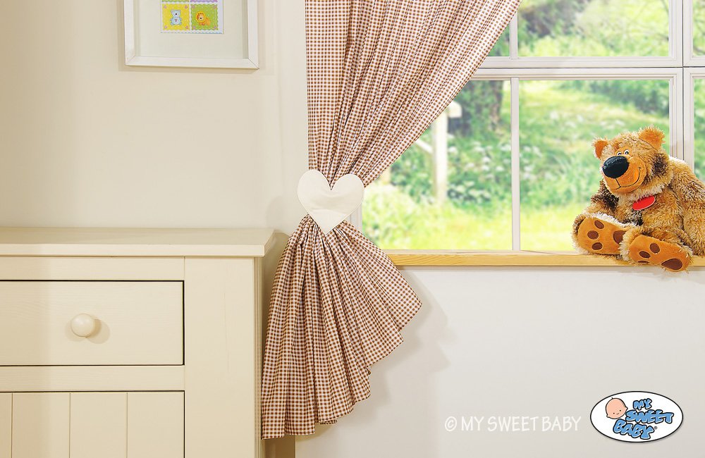 Užuolaidos kūdikio kambariui rudos su meškiuku ir širdimi