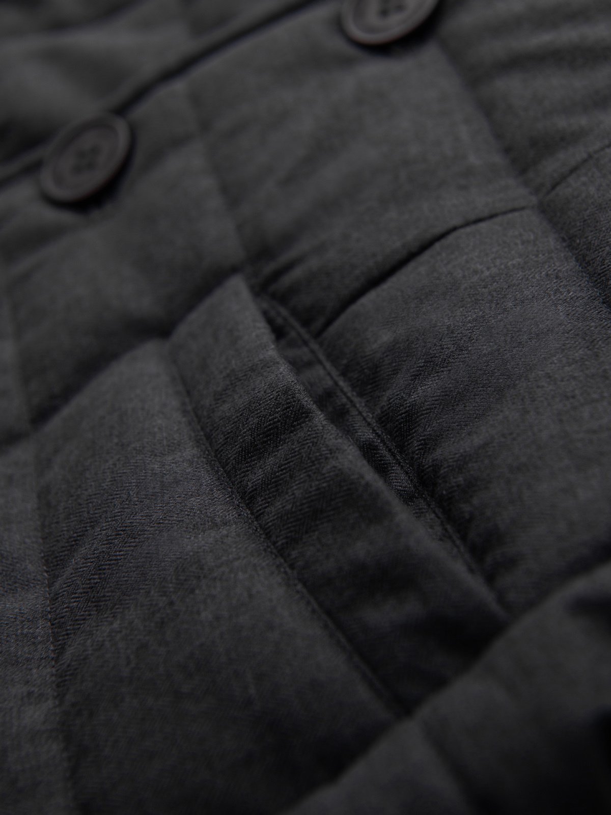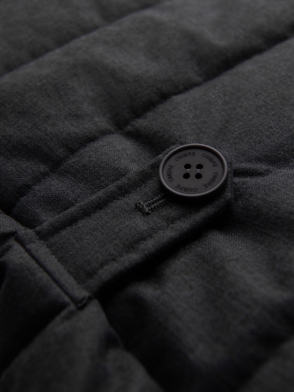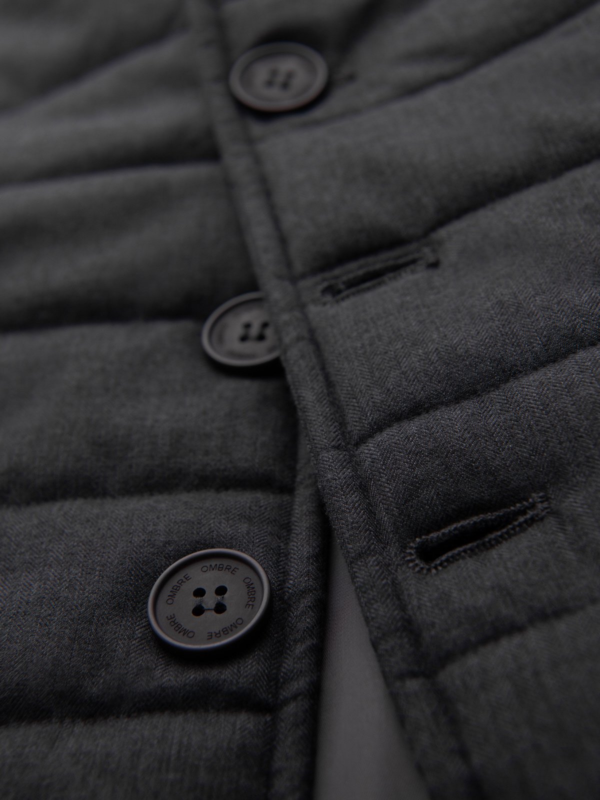 Vyriška liemenė smėlio spalvos – lengva dygsniuota liemenė su persiko faktūros paviršiumi ir nedideliu sintetiniu pašiltinimu, skirta pereinamajam sezonui kaip papildomas šiltas sluoksnis. Dygsniuota konstrukcija suteikia formą, o užsegimas su spaudėmis ir aukšta apykaklė saugo nuo vėjo. Produktas priklauso Ombre Heritage kolekcijai ir pasižymi paprastai derinamu siluetu.