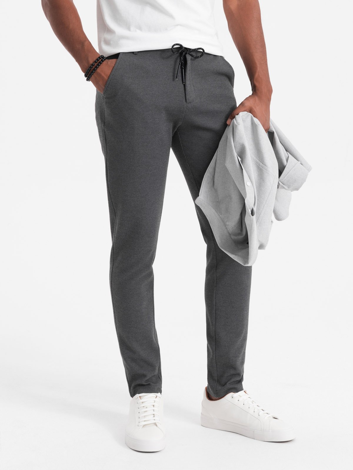 Vyriškos trikotažinės kelnės su elastine juosta - tamsiai pilkos spalvos