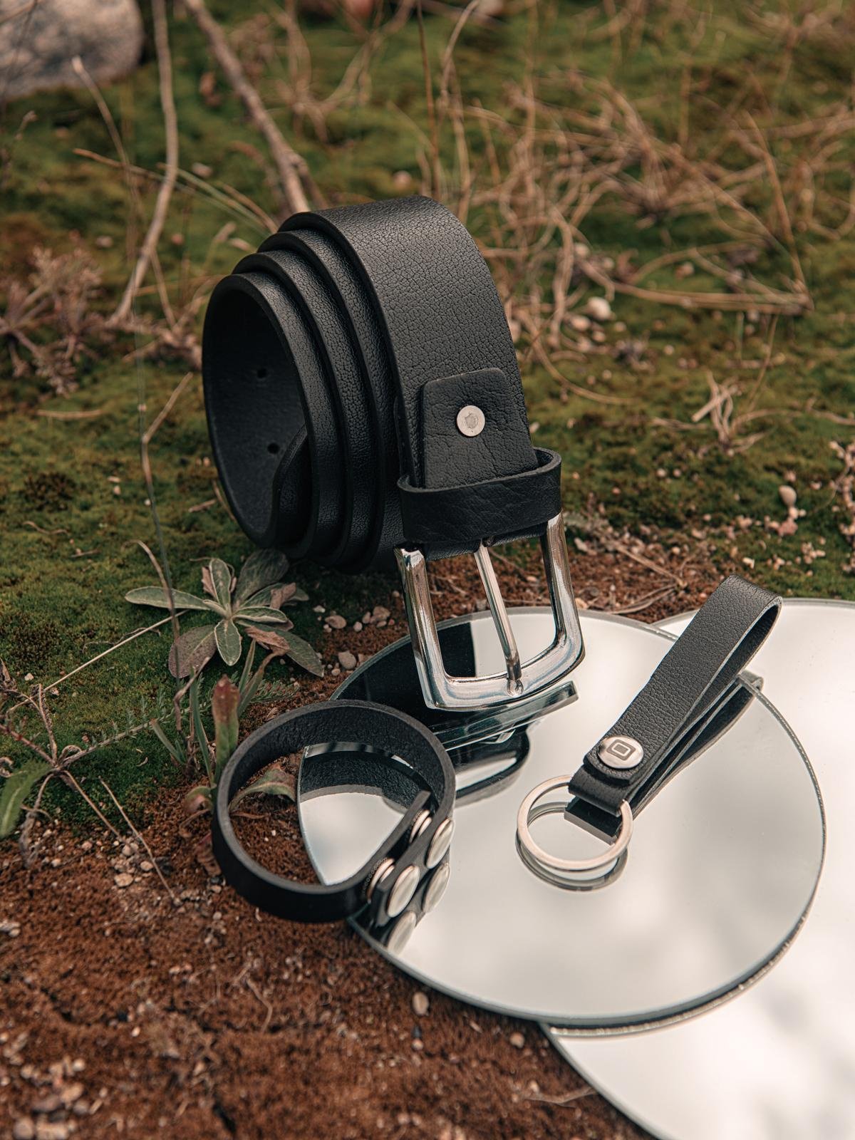Vyriškų odinių aksesuarų rinkinys juodas