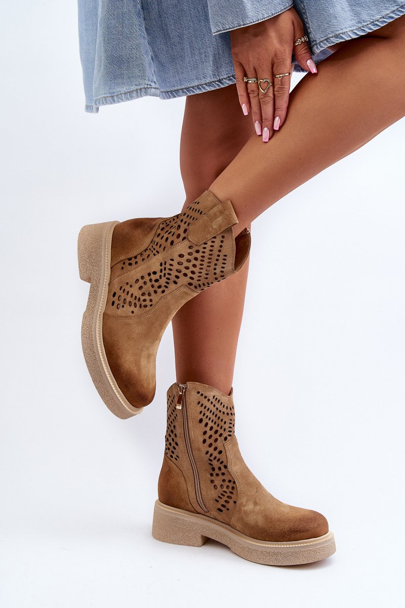 Madingi ir patogūs, šie batai - puikus pasirinkimas bet kokiai progai. Pagaminti iš natūralios zomšos. Ažūrinis batų viršus suteikia elegancijos ir lengvumo, pabrėždamas originalų stilių. Dėl užtrauktuko juos lengva apsiauti ir pritaikyti prie kojos. Suapvalinta nosis užtikrina patogų avėjimą. Šie batai bus puikus priedas prie įvairios aprangos! Rinkdamiesi dydį vadovaukitės dydžių lentele.